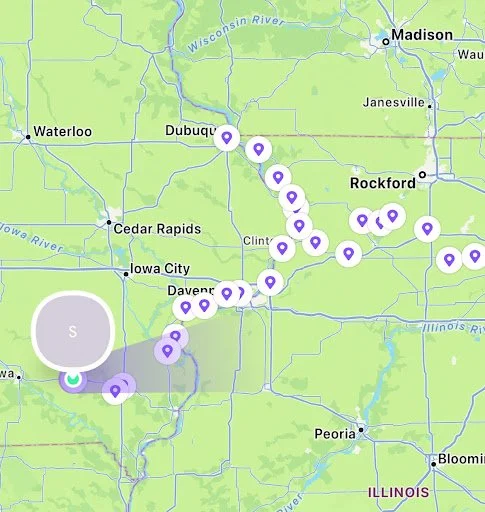 It’s been a minute since I wrote. Actually, a month and some change. Since that time, I have spent a few weeks in Minneapolis with my family and then took off walking on part two with my 22 year old daughter, Luca. I spent a lot of time with the Mississippi River heading north and then we spent some time on the river heading south. This dance that has nothing to do with an east west trajectory is why this walk will be closer to 4,000 miles than the 2,8xx that it takes to walk from east to west going the shortest distance. It is also why I don’t mind if I get a ride to shave off 20 or 30 miles from time to time. That is what some of the big gaps are that show up on the map. Either a ride or one of those 25 mile days that has my feet throbbing and my mind filled with wonder that I could do that.